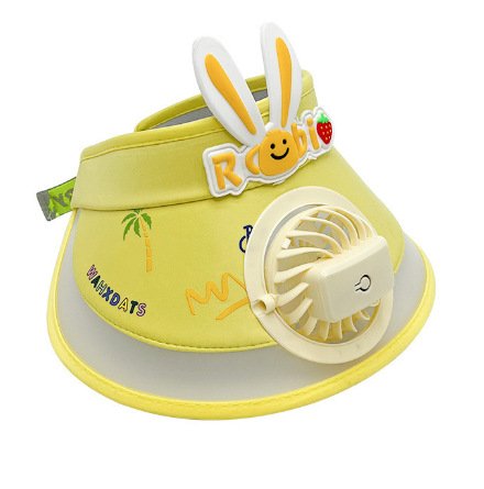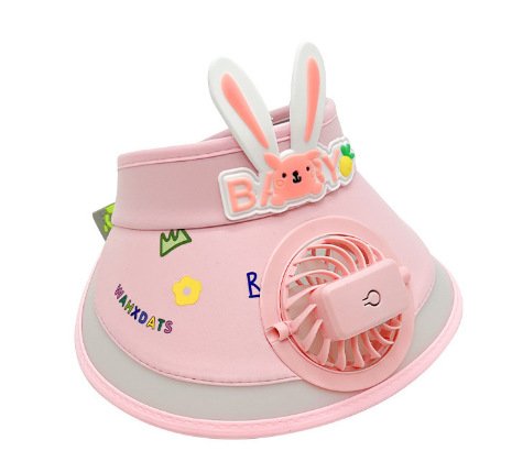 Otenee Summer Outdoor Travel Children’s Sunscreen Cap Cartoon for Men and Women with Wide Brim, Open Top, Hat Band USB Charging Fan, and Sunshade
